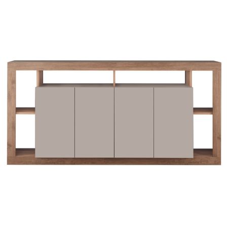 Buffet 4 portes avec encadrement 6 niches beige et aspect bois finition Mercure - LIMANI.