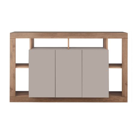 Buffet 3 portes avec encadrement 6 niches beige et aspect bois finition Mercure - LIMANI.