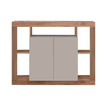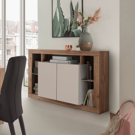 Buffet 2 portes avec encadrement 5 niches beige et aspect bois finition Mercure - LIMANI.