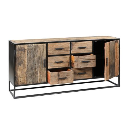 Buffet 2 portes 6 tiroirs en teck recyclé et métal laqué noir - TANETOA