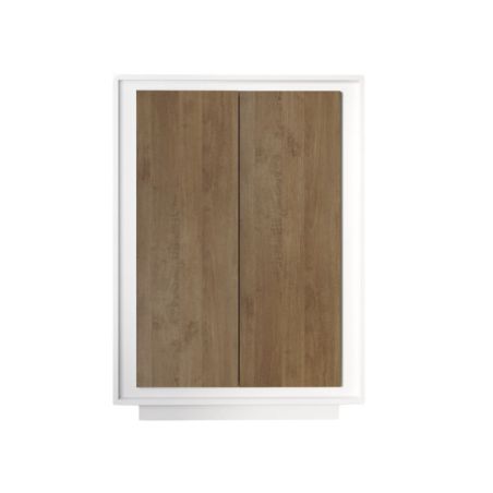 Rangement 2 portes blanc laqué façades aspect bois finition Mercure piètement socle - AZONTO.