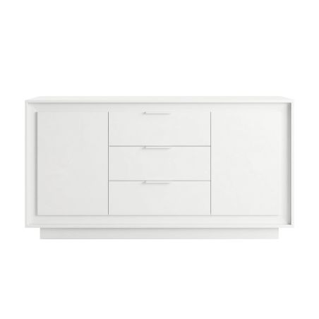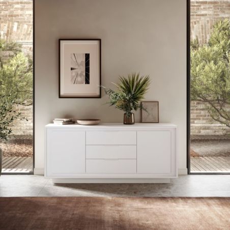 Buffet 2 portes 3 tiroirs blanc laqué piètement socle - AZONTO.