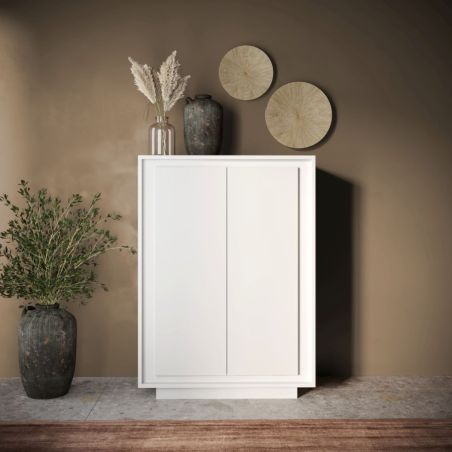 Rangement 2 portes blanc laqué piètement socle - AZONTO.