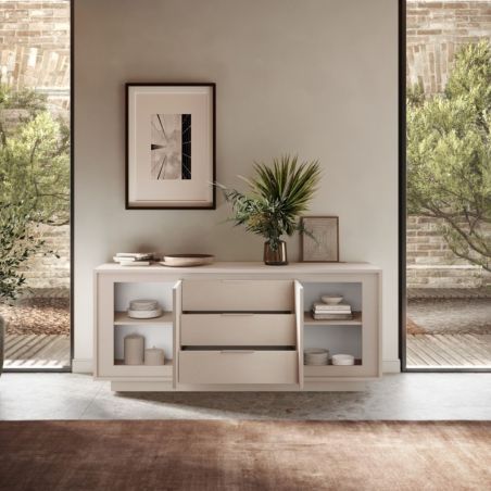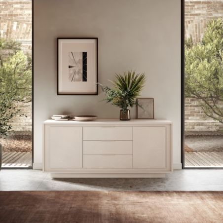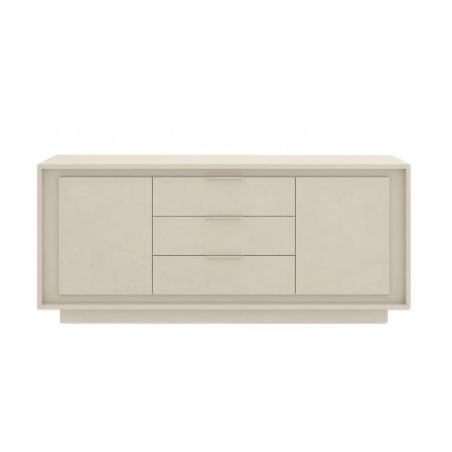 Buffet 2 portes 3 tiroirs beige poudré piètement socle - AZONTO.