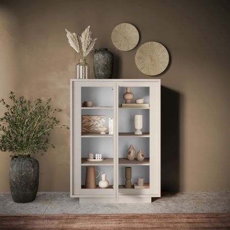Rangement 2 portes beige poudré piètement socle - AZONTO.