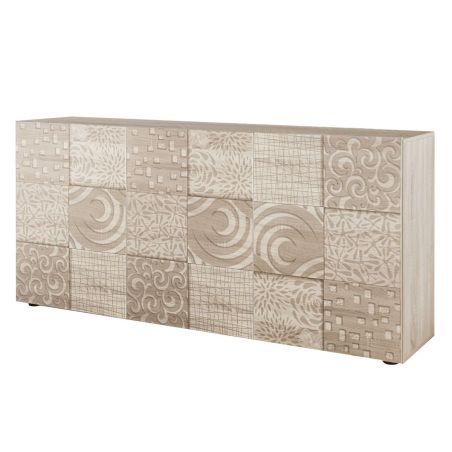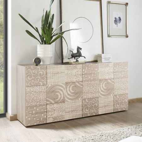 Buffet 3 portes aspect bois samoa sérigraphies multi-motifs - JUAN.
