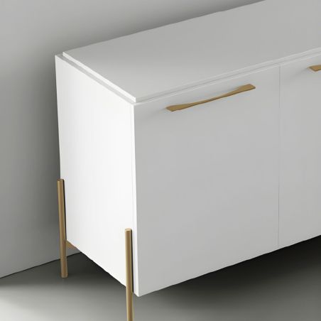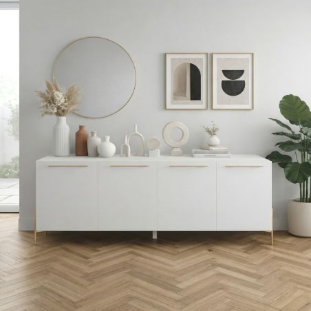 Buffet 4 portes laqué blanc pieds et poignées métal doré - CARAT.