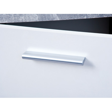 Structure en panneaux de particules, finition coloris blanc et aspect béton.