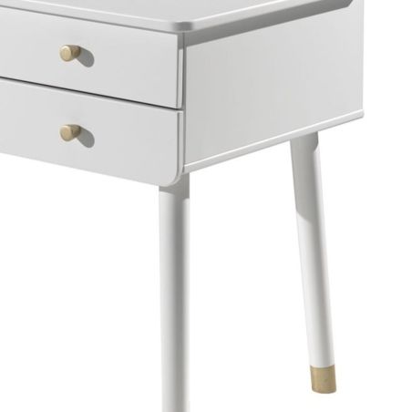 Bureau 2 Tiroirs Blanc, pieds et poignées Gold, de la gamme Tiny White.