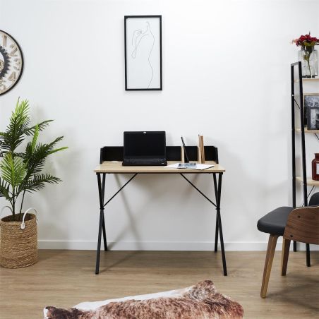 Bureau Badie Plateau Effet Bois et Piètement Noir.