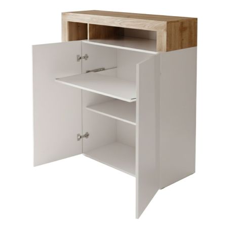 Bureau secrétaire 2 portes contemporain blanc laqué et aspect bois finition Cadiz - ARTURO.