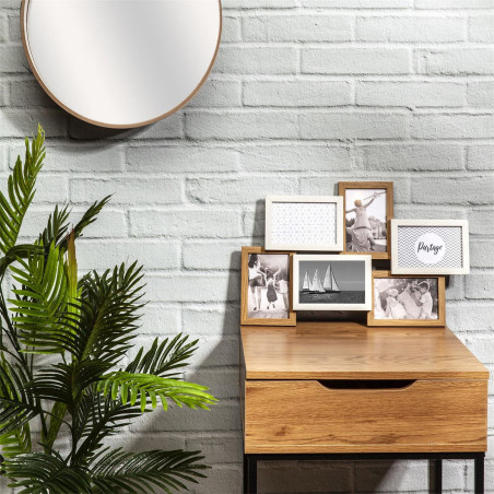 Pêle-mêle 6 Cadres Photo Effet Bois Naturel et Blanc.