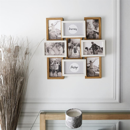 Pêle-mêle 9 Cadres Photo Effet Bois Naturel et Blanc.