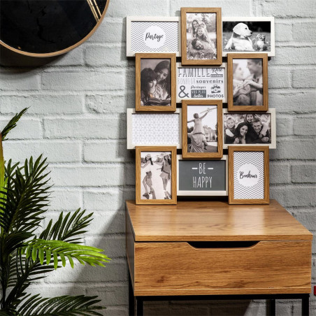 Pêle-mêle 12 Cadres Photo Effet Bois Naturel et Blanc.