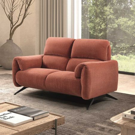 Canapé fixe 2 places tissu polyester terracotta de la gamme Malko.
