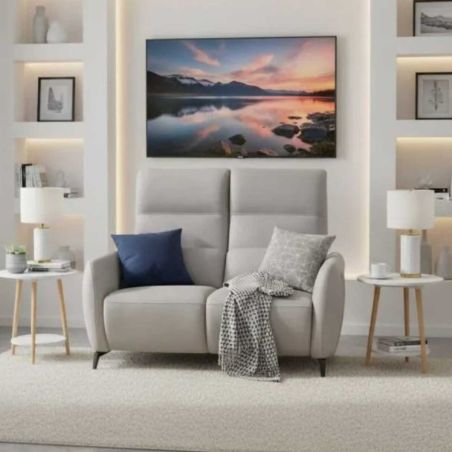 Canapé 2 places fixe tissu polyester micro peau ultra doux gris clair - SMALK.