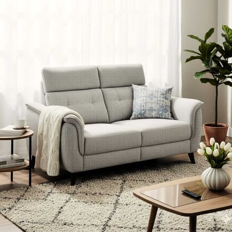 Canapé 2 places fixe tissu polyester chiné gris galet - PLYM.