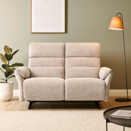 Canapé 2 places fixe tissu maillé polyester ultra doux beige - LAMA.