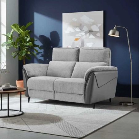 Canapé 2 places fixe bi-matière tissu chenillé polyester et PVC gris - CELESTE.