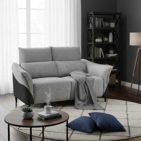 Canapé 2 places fixe tissu chenillé polyester gris et gris carbone - AKENIA.