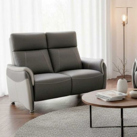 Canapé 2 places fixe tissu polyester micro peau gris plomb et gris perle - SANGY.