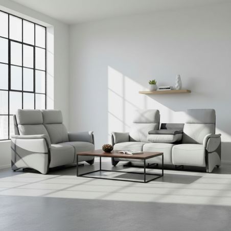 Canapé 2 places fixe tissu polyester micro peau bi-colore gris - SYMPHONY.