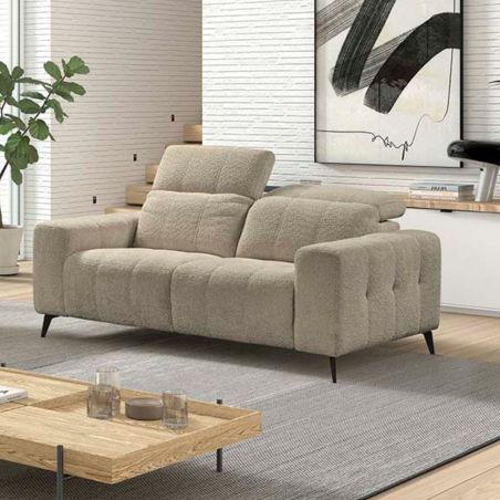 Canapé 2 places fixe en tissu poils courts style sherpa crème - ALKANE.