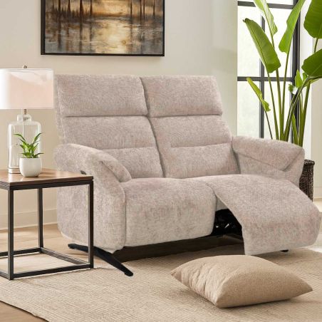 Canapé 2 places relax électrique tissu maillé polyester ultra doux beige - LAMA.