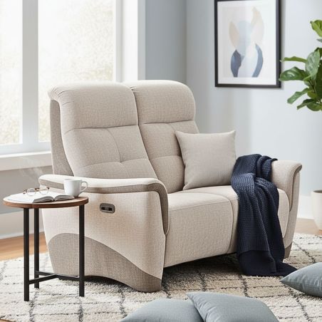 Canapé 2 places relax électrique tissu maillé polyester ultra doux bi-colore beige - AUSTRAL.