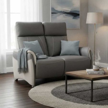 Canapé 2 places relax électrique tissu polyester micro peau gris plomb et gris perle - SANGY.