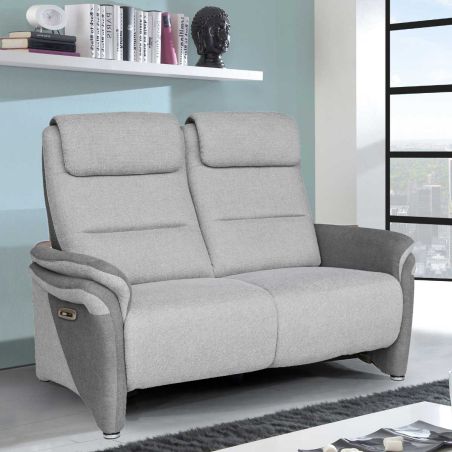 Canapé 2 places relax électrique tissu polyester gris clair et gris foncé - NADIR.