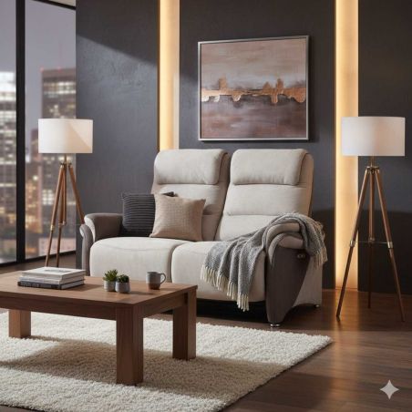 Canapé 2 places relax électrique tissu polyester micro peau brun et mastic - NADIR.