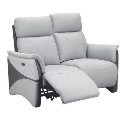 Canapé 2 places relax électrique tissu polyester micro peau bi-colore gris - SYMPHONY.