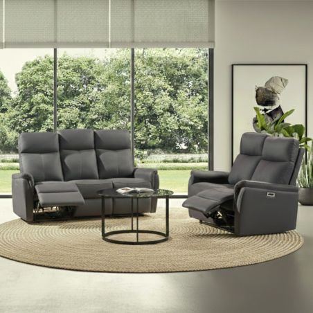 Canapé 2 places relax électrique tissu polyester imitation cuir gris foncé - GIACOMO.