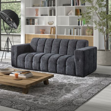 Canapé 3 places fixe en tissu polyester chenillé gris - MENTON.
