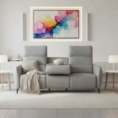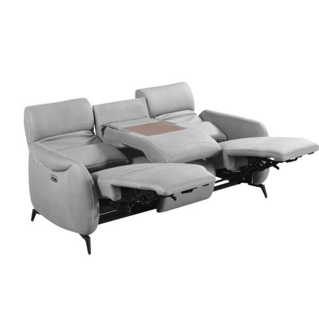 Canapé 3 places relax électrique tissu polyester micro peau ultra doux gris clair avec tablette centrale - SMALK.