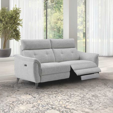 Canapé 3 places relax électrique tissu polyester chiné gris galet - PLYM.
