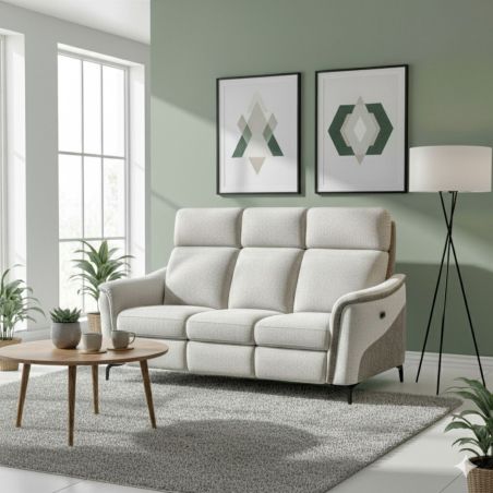Canapé 3 places relax électrique tissu maillé polyester ultra doux bi-colore gris avec tablette centrale - SOLLYS.