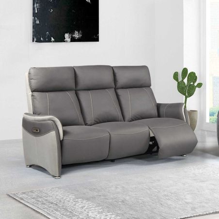 Canapé 3 places relax électrique tissu polyester micro peau gris plomb et gris perle avec tablette centrale - SANGY.