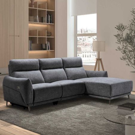 Ce canapé aux lignes modernes offre un espace détente confortable pour 3 personnes pouvant se partager 1 places relax et 1 place méridienne.