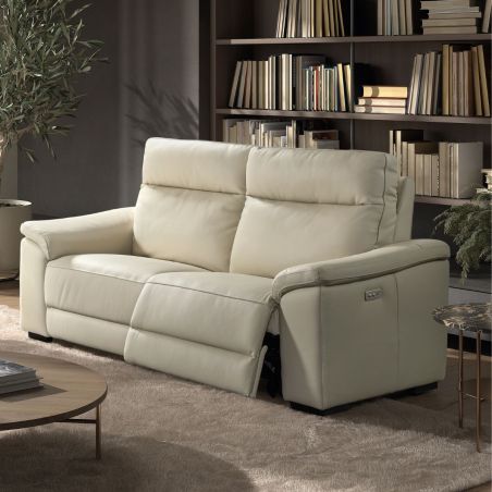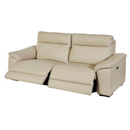 Canapé Relax Electrique 3 Places en cuir écru - STANLEY. A la fois classique et contemporain, ce canapé trouvera une place privilégiée dans tous les salons.