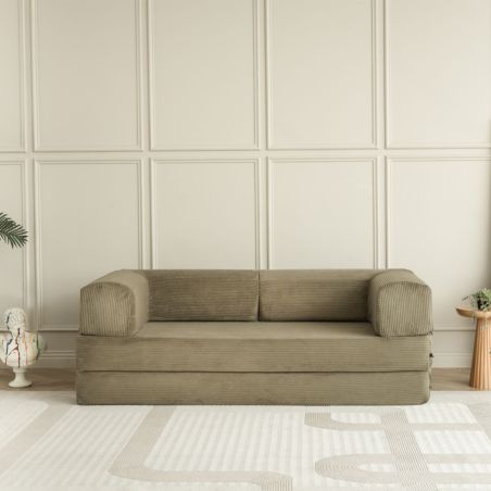 Canapé-lit 2 places modulable en mousse et tissu velours coloris vert - EDNA