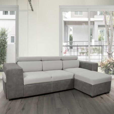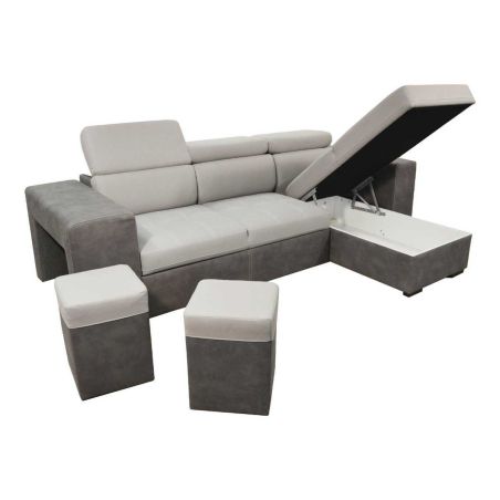 Canapé convertible méridienne réversible avec coffre + 2 poufs intégrés bicolore gris - CESAR.