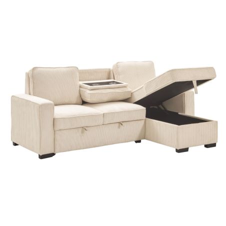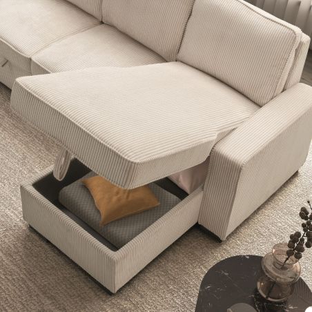 Canapé d'angle droit convertible avec 1 coffre velours côtelé beige - NAPOLINO.