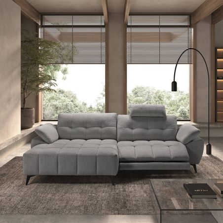 Canapé Relax Méridienne gauche Têtières Réglables Tissu Gris foncé de la gamme Villalba.