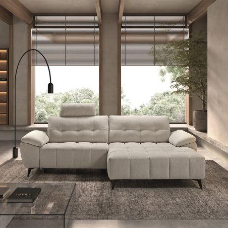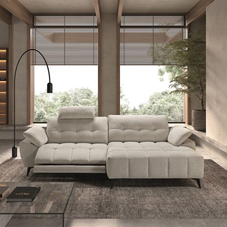Canapé Relax Méridienne droite Têtières Réglables Tissu Beige de la gamme Villalba.