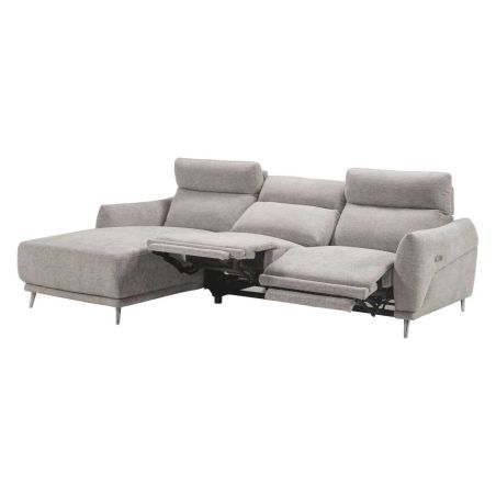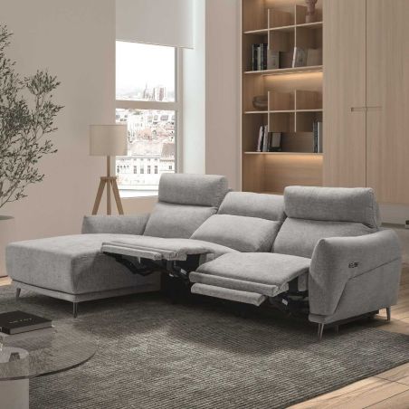Canapé 3 places relax électrique avec méridienne gauche tissu polyester chiné gris clair - SANTIAGO.