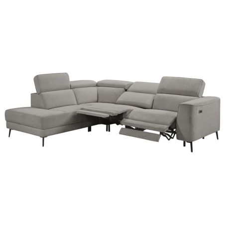 Canapé d'angle gauche avec 2 places relax électrique tissu gris - BAMAKO.