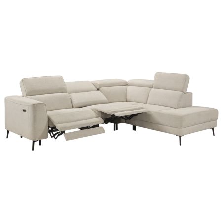 Canapé d'angle droit avec 2 places relax électrique tissu beige - BAMAKO.