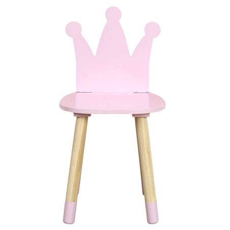 Chaise Enfant Rose, Piètement Bois naturel et Dossier Forme Couronne.